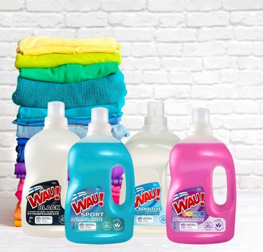 Bland WAU! tvättmedlen hittar du produkter både för kulör- och vittvätt samt sporttextilier.